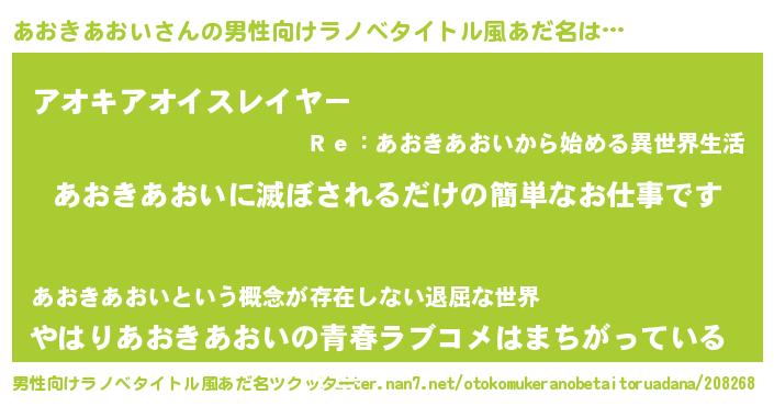 | 胡散臭い通販商品みたいなあだ名 | 『世界が平和になる高級そうな壺…その名も「あおきあおい」』 |