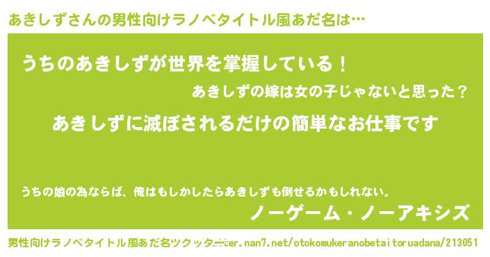 | 意味不明あだ名 | 『眠気覚ましガムあきしず味』 |