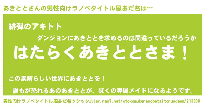 | 胡散臭い通販商品みたいなあだ名 | 『絶対に幸福をもたらす健康食品…その名も「あきとと」』 |