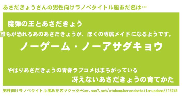 | 女子向けラノベタイトル風あだ名 | 『あさだきょう恋絵巻』 |