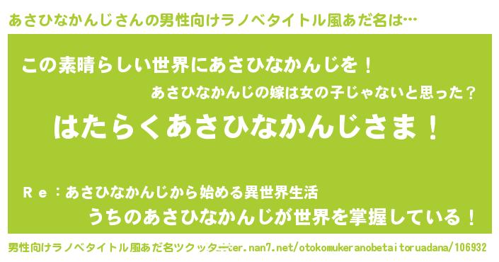 | 欧米人風あだ名 | 『アンジェラ・あさひなかんじ』 |
