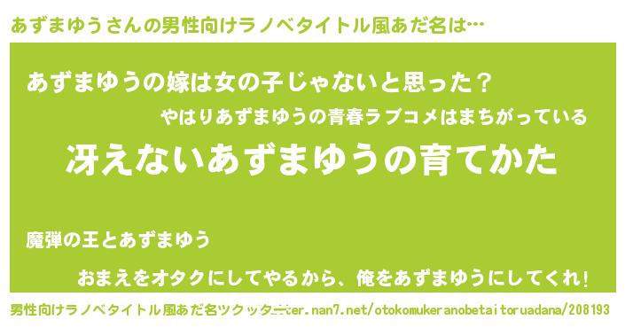 | ヒーロー風カッコイイあだ名 | 『幻影騎士アズ』『正義の使者あずまゆう』 |