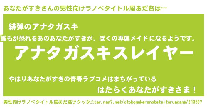 | 胡散臭い通販商品みたいなあだ名 | 『絶対に幸福をもたらす水素水…その名も「あなたがすき」』 |