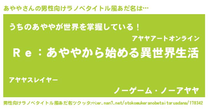 | ヘコむあだ名 | 『あやもー』『あやや(笑)』 |