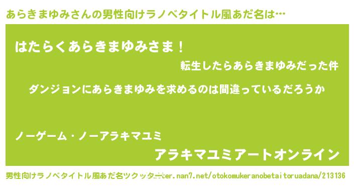 | 女子向けラノベタイトル風あだ名 | 『あらきまゆみは平凡を望む』 |