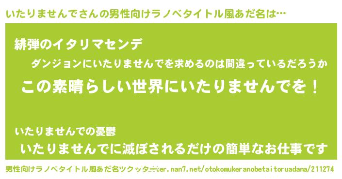 | 胡散臭い通販商品みたいなあだ名 | 『あなたにだけ特別に提供する限定10本のレアな日本酒…その名も「いたりませんで」』 |