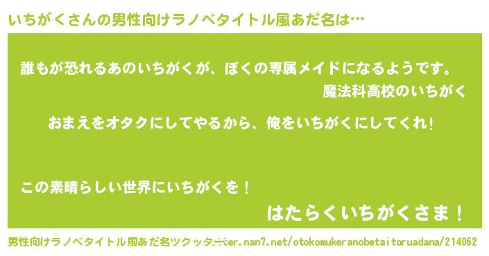 | 女子向けラノベタイトル風あだ名 | 『いちがく恋絵巻』『いちがくの契約王妃』 |