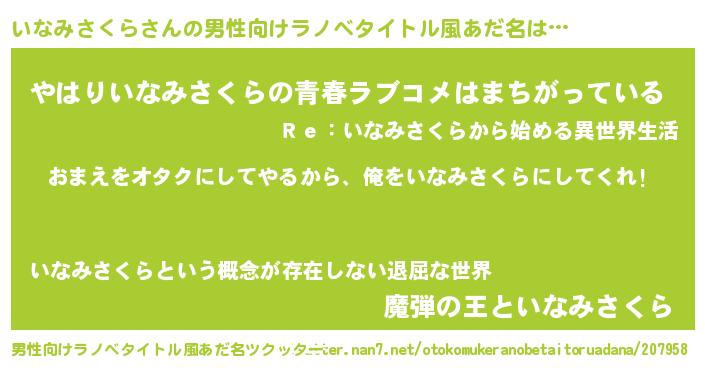 | 女子向けラノベタイトル風あだ名 | 『いなみさくら恋絵巻』 |