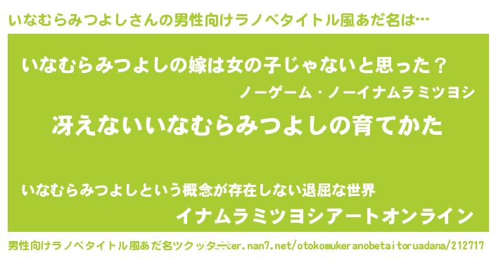 | 胡散臭い通販商品みたいなあだ名 | 『伝統あるサプリメント…その名も「いなむらみつよし」』 |