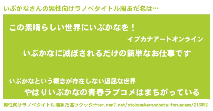 いぶかなさんの男性向けラノベタイトル風あだ名をツクッター!