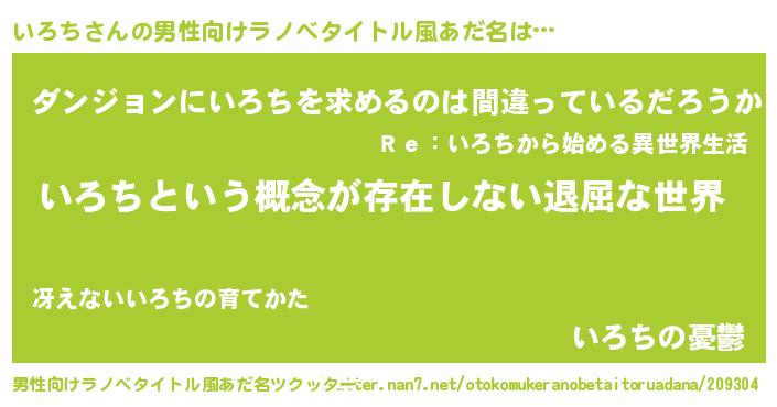 | 女子向けラノベタイトル風あだ名 | 『異世界で失敗しない100のいろち』 |