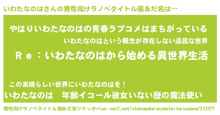 | 女子向けラノベタイトル風あだ名 | 『いわたなのはストレイドッグス』 |
