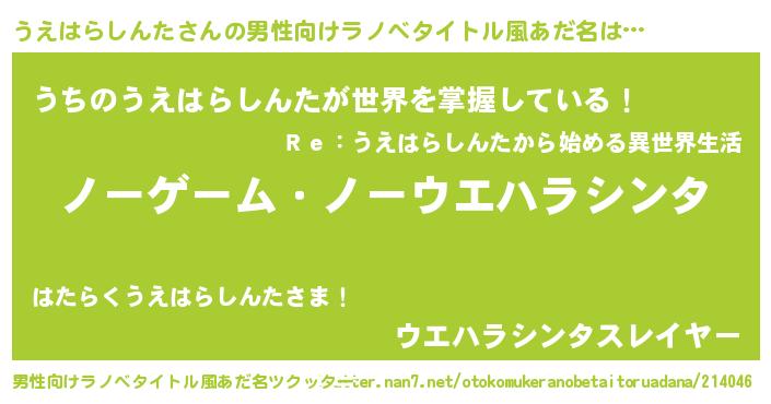 | 女子向けラノベタイトル風あだ名 | 『死神うえはらしんたの再婚』 |