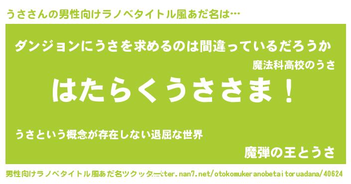 | ポケモン風あだ名 | 『ウサゴンZ』『ヒウサ』『ウーサイ』 |