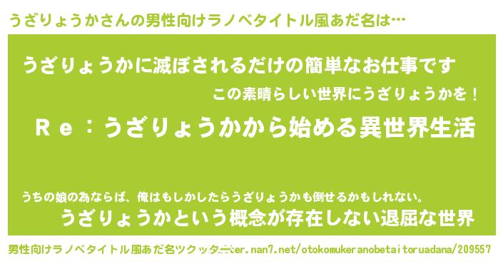 | 肩書あだ名 | 『うざりょうか総統』『うざりょうか先生』 |
