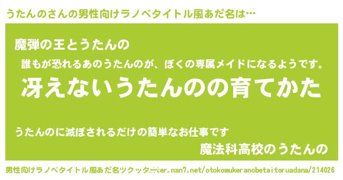 | 意味不明あだ名 | 『住所不定無職うたんの(93歳)』 |
