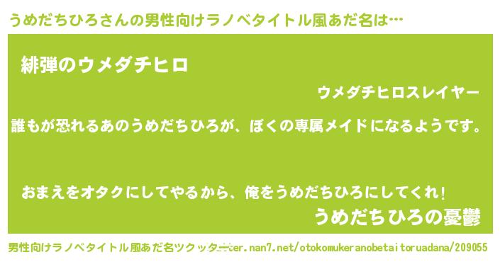 | 女子向けラノベタイトル風あだ名 | 『うめだちひろの契約王妃』 |