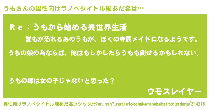 | 女子向けラノベタイトル風あだ名 | 『うもの婚約者』『闇のうも』 |