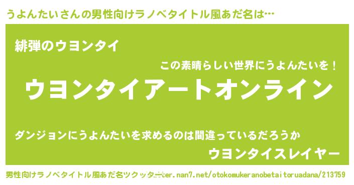 | 意味不明あだ名 | 『ペロリンうよんたい』『自称うよんたい』 |
