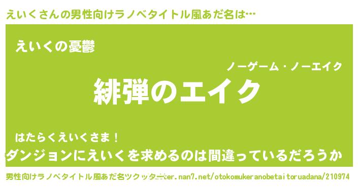 | 胡散臭い通販商品みたいなあだ名 | 『必ず成功する霊験あらたかなお札…その名も「えいく」』 |