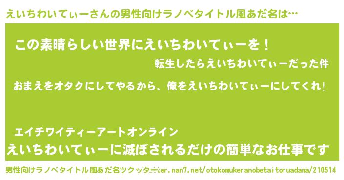| 女子向けラノベタイトル風あだ名 | 『えいちわいてぃー恋絵巻』 |
