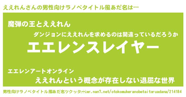 | ヒーロー風カッコイイあだ名 | 『仮面エエダー』『ネオエエレン』 |