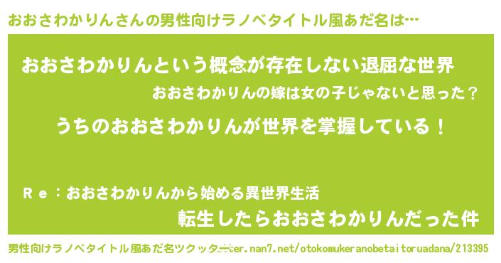 | 意味不明あだ名 | 『永久保存おおさわかりん』 |