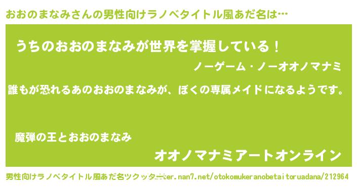 | 女子向けラノベタイトル風あだ名 | 『異世界でカフェおおのまなみを開店しました。』 |