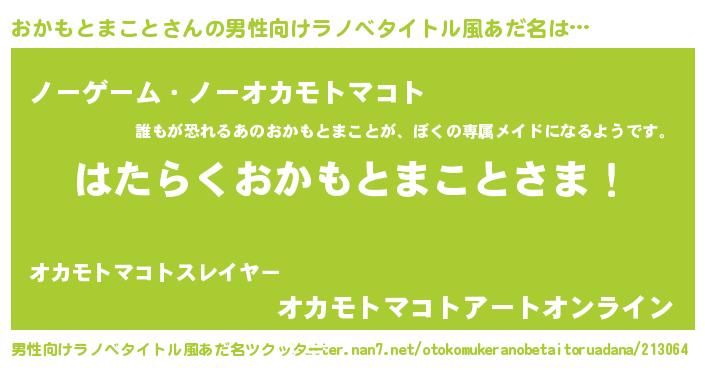 | ヘコむあだ名 | 『おかにゅー』『おかもとまこと(爆)』 |