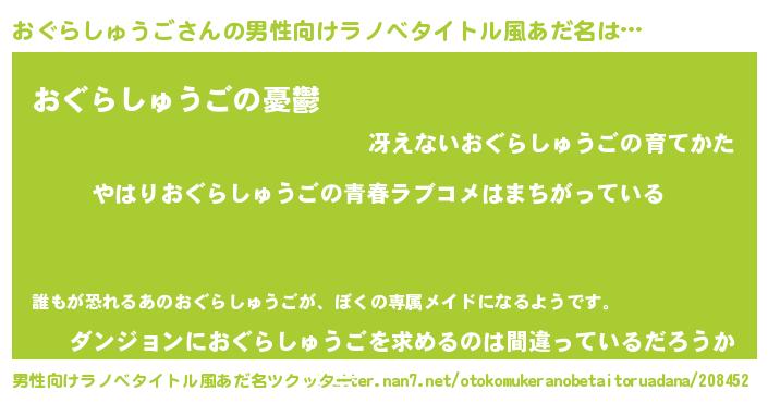 | 意味不明あだ名 | 『おぐらしゅうごフォーエバー』 |