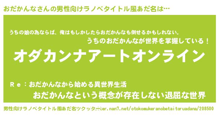 | 胡散臭い通販商品みたいなあだ名 | 『モテモテ間違いなし霊験あらたかなお札…その名も「おだかんな」』 |