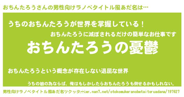 | 女子向けラノベタイトル風あだ名 | 『おちんたろう姫と円卓の騎士』 |