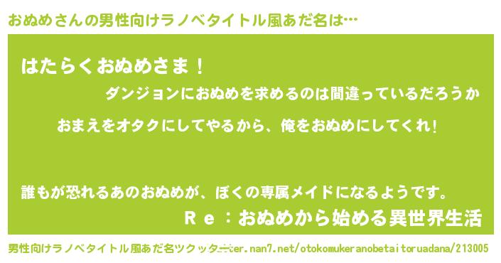 | ヘコむあだ名 | 『おぬを』『おぬめ(爆)』『豆乳』 |