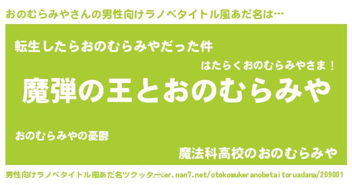 | 女子向けラノベタイトル風あだ名 | 『おのむらみやが死なない童話 林檎のおのむらみやの診療簿』 |