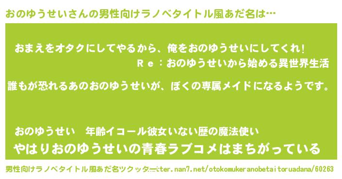 | 意味不明あだ名 | 『永久保存おのゆうせい』 |