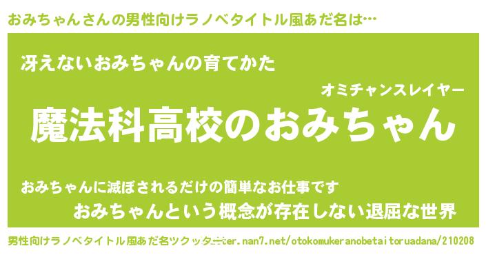 | ヘコむあだ名 | 『おみちゃん(震え声)』『豆乳』 |
