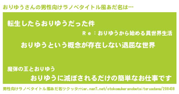 | 胡散臭い通販商品みたいなあだ名 | 『来世でも幸せになれる健康食品…その名も「おりゆう」』 |