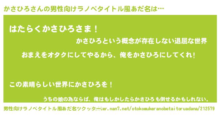 | ヘコむあだ名 | 『豆乳』『かさひろ(笑)』 |