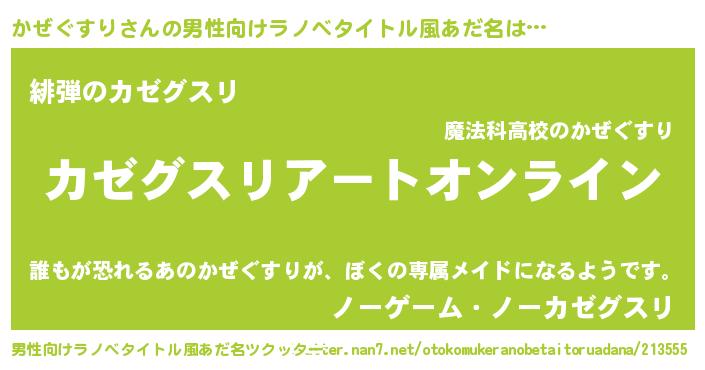 | 女子向けラノベタイトル風あだ名 | 『誰かこのかぜぐすりを説明してください! ~契約から始まるウェディング~』 |