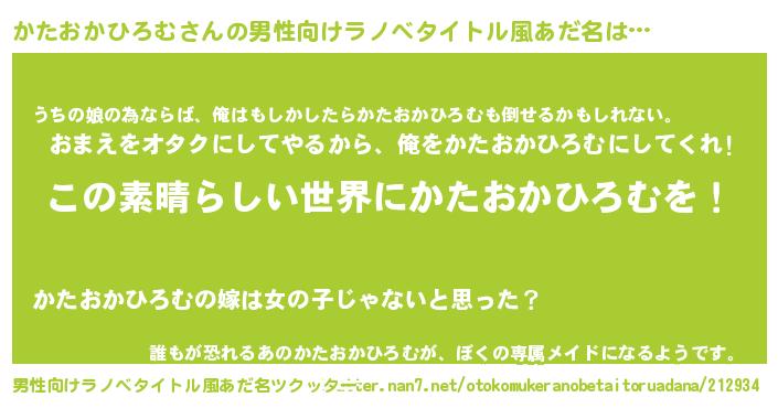| 意味不明あだ名 | 『住所不定無職かたおかひろむ(85歳)』 |
