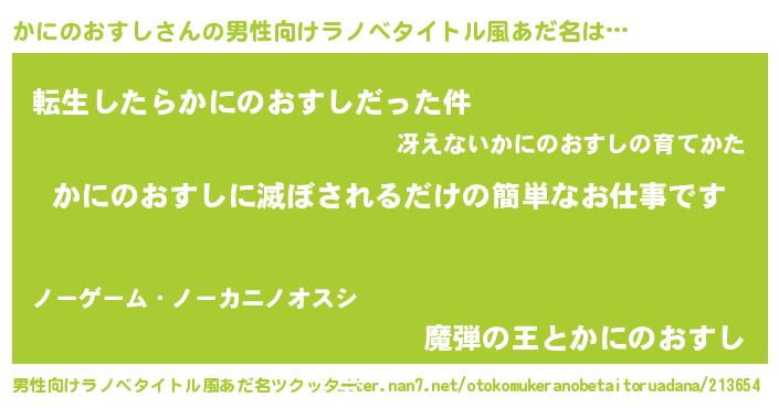かにのおすしさんの男性向けラノベタイトル風あだ名をツクッター!