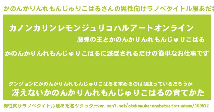 | 女子向けラノベタイトル風あだ名 | 『横柄かのんかりんれもんじゅりこはると宰相陛下』 |