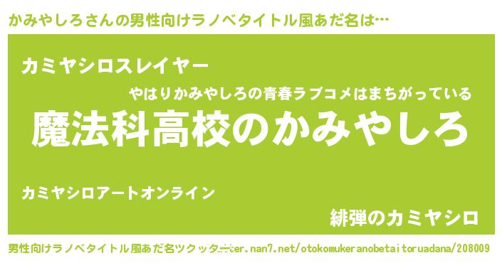 | ヒーロー風カッコイイあだ名 | 『超時空戦士カミヤシロ』『仮面カミダー』 |