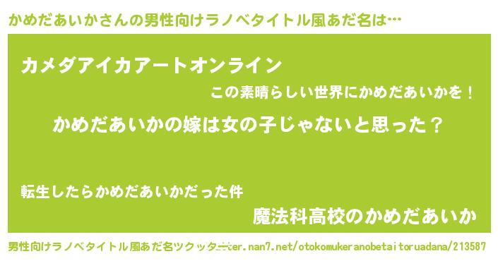 | 女子向けラノベタイトル風あだ名 | 『かめだあいか様がみてる』 |