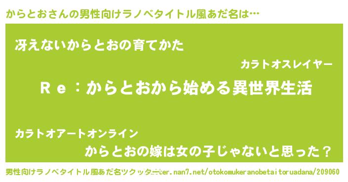| 女子向けラノベタイトル風あだ名 | 『からとおストレイドッグス』 |