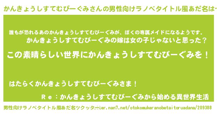 | 胡散臭い通販商品みたいなあだ名 | 『あなたにだけ特別に提供する限定10本のレアな日本酒…その名も「かんきょうしすてむびーぐみ」』 |