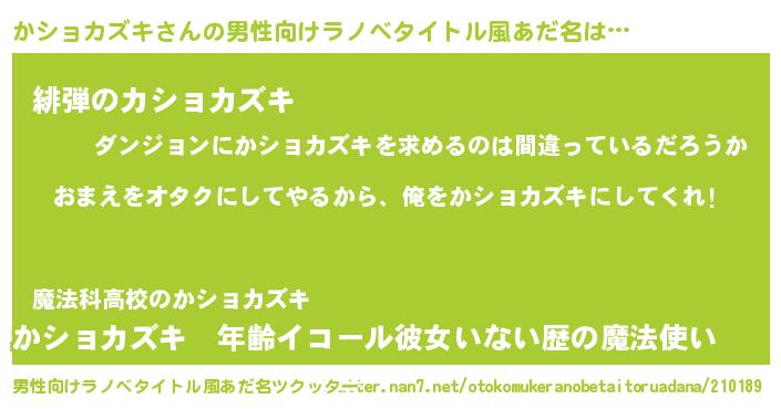 | ヒーロー風カッコイイあだ名 | 『愛の使者かショカズキ』『魔戒騎士カシ』 |