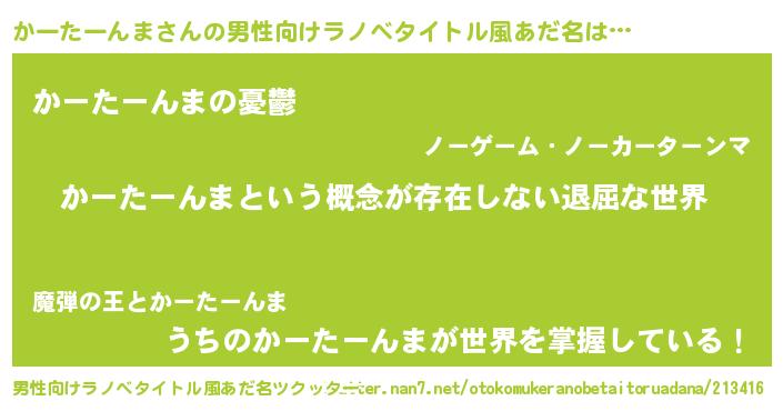 | 胡散臭い通販商品みたいなあだ名 | 『来世でも幸せになれる健康食品…その名も「かーたーんま」』 |