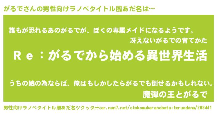 | 意味不明あだ名 | 『自称がるで』『永久保存がるで』 |