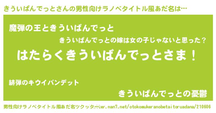 | 胡散臭い通販商品みたいなあだ名 | 『世界中を虜にした世界で10本だけ現存している希少なブランデー…その名も「きういばんでっと」』 |